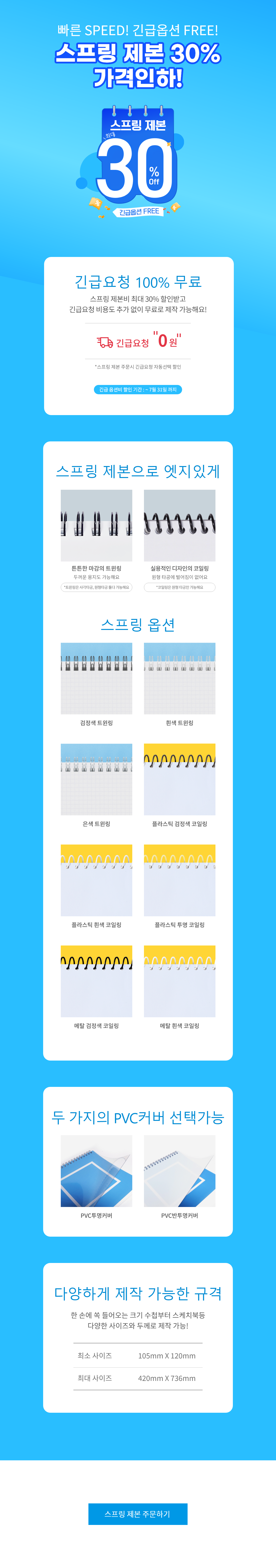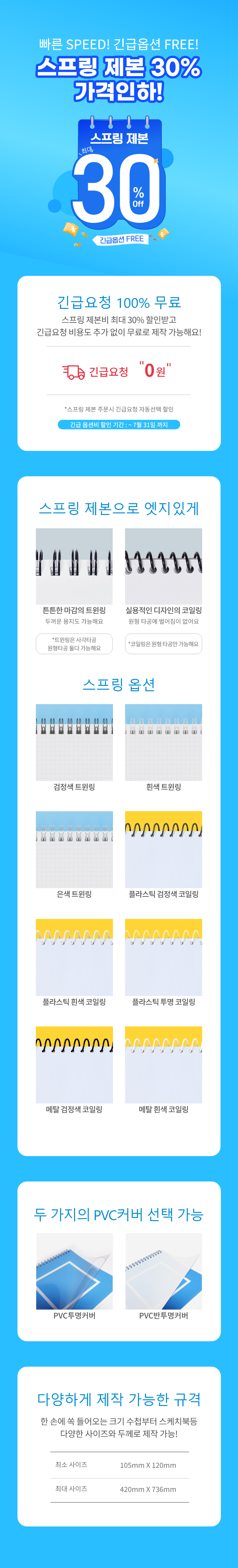 7월 스프링 제본 ~30% 가격인하 & 긴급요청 100% 무료