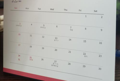 디지털 스탠드 달력(가로형) 달력을 만들고 싶어서 샘플로 출력했는데